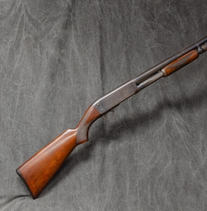 Special Features: THIS JOHN M. BROWNING DESIGNED MODEL 17 IS A LIGHTWEIGHT, PUMP ACTION HAMMERLESS, UNDERLOADING, TUBULAR MAGAZINE, BOTTOM EJECTING, TAKEDOWN SHOTGUN SIMILIAR DESIGN TO AN ITHACA MODEL 37 THIS AMERICAN CLASSIC DESERVES TO BE TAKEN UPLAND HUNTING ON THE PRAIRIES AGAIN CHECKERED STOCK & FOREARM W/ORIGINAL BUTT PLATE CONDITION: VERY GOOD |