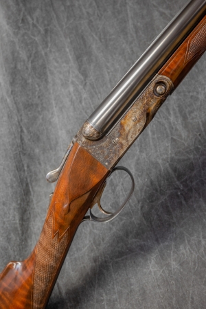 Special Features: BEAUTIFUL CASE-HARDENED ACTION W/CLASSIC DHE GAME SCENE & SCROLL ENGRAVING SINGLE SELECTIVE TRIGGER EJECTORS HIGHLY FIGURED STRAIGHT GRIP STOCK W/SKELETON STEEL BUTT PLATE SPLINTER FOREARM AUTO SAFETY MAKERS LEATHER COVERED W/CANVAS COVER CASE MADE IN JAPAN CONDITION: MINT. |