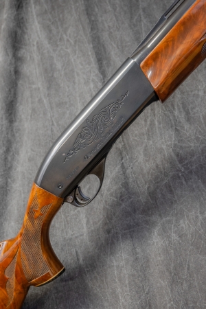 Special Features: LEFT HAND, GAS OPERATED ACTION SCROLL ENGRAVED RECEIVER HIGHLY FIGURED, GLOSS FINISH, MONTE CARLO STOCK AND FOREARM W/ FLEUR-DE-LIS CHECKERING ORIGINAL REMINGTON RECOIL PAD DROP @ MONTE CARLO 2 1/16" NO BOX CONDITION: EXCELLENT |