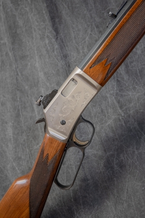 Special Features: SATIN NICKEL LEVER ACTION RECEIVER W/SCROLL ENGRAVING & GOLD TRIGGER GROOVED FOR SCOPE MOUNTS, WILLIAMS PEEP SIGHT CLASSIC BLUED OCTAGON BARREL 15 SHOT TUBULAR MAGAZINE SATIN FINISH AMERCIAN WALNUT STOCK & FOREARM W/TRADITIONAL POINT PATTERN CHECKERING NO ORIGINAL BOX MADE IN JAPAN BY MIROKU 2026 MSRP $1,430 CONDITION: EXCELLENT |