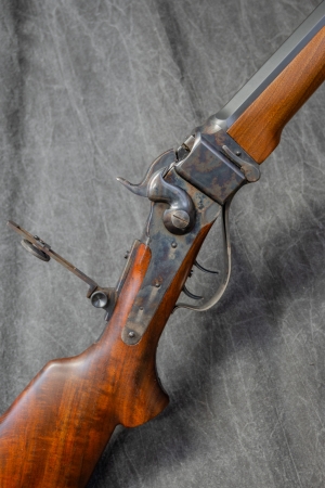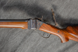 Special Features: CASE COLOR FALLING BLOCK ACTION W/ CHECKERED TANG SET TRIGGER BLUED OCTAGON BARREL W/ PEEP SIGHT SATIN FINISHED PISTOL GRIP WALNUT STOCK WITH RIGHT HAND CHEEK PIECE & BLACK PLASTIC RECOIL PAD SATIN FINISH WALNUT FOREARM W/ PEWTER TIP NO ORIGINAL BOX AMMO AVAILABLE FROM FIELDSPORT MADE BY SHILOH RIFLE CO. BIG TIMBER, MT CONDITION: EXCELLENT |