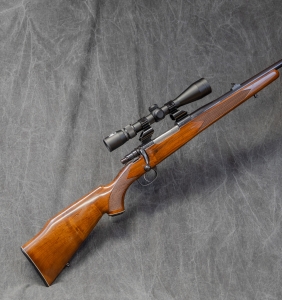 Special Features: BOLT ACTION W/GLOSS BLUED ACTION & BARREL 5-RD HINGED FLOOR PLATE MAGAZINE THUMB SAFETY CHECKERED DE-LUXE WALNUT STOCK W/RIGHT HAND CHEEK PIECE & MAKERS BUTT PLATE SLING SWIVEL STUDS GOLD BEAD FRONT SIGHT & FOLD DOWN REAR SIGHT W/HOLDEN SEE-THROUGH SCOPE MOUNTS MADE IN MANCHESTER, ENGLAND CONDITION: VERY GOOD |