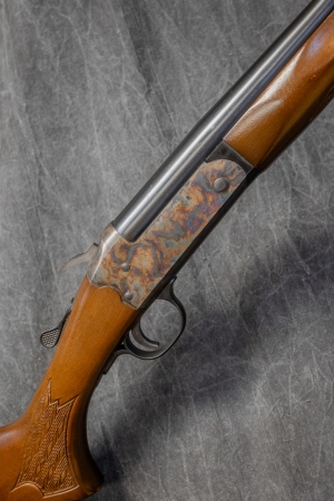 Special Features: YOUTH MODEL W/SHORT LOP CASE COLOR, SINGLE SHOT, HAMMER FIRED, BREAK ACTION GLOSS BLUED BARREL EJECTOR DARK COLORED, CHECKERED STOCK & WIDE,HAND GROOVE FOREARM RUBBER RECOIL PAD CONDITION: EXCELLENT |